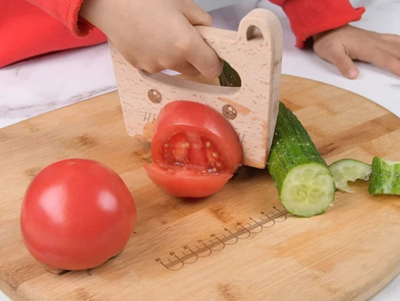 Entdecke unsere hochwertigen und sicheren Bambusmesser, speziell für deine kleinen Köche und Küchenhelfer! Mit diesen Messern können Kinder ihre Speisen eigenständig vorbereiten und aktiv bei der Zubereitung mithelfen. Dank ihrer sicheren Konstruktion kannst du beruhigt sein, denn trotz ihrer Effektivität sind sie absolut ungefährlich für kleine Hände. Du kannst deinem Kind problemlos erlauben, mit den Messern zu arbeiten, um so seine motorischen Fähigkeiten, Selbstbewusstsein und Freude am Kochen zu entwickeln.